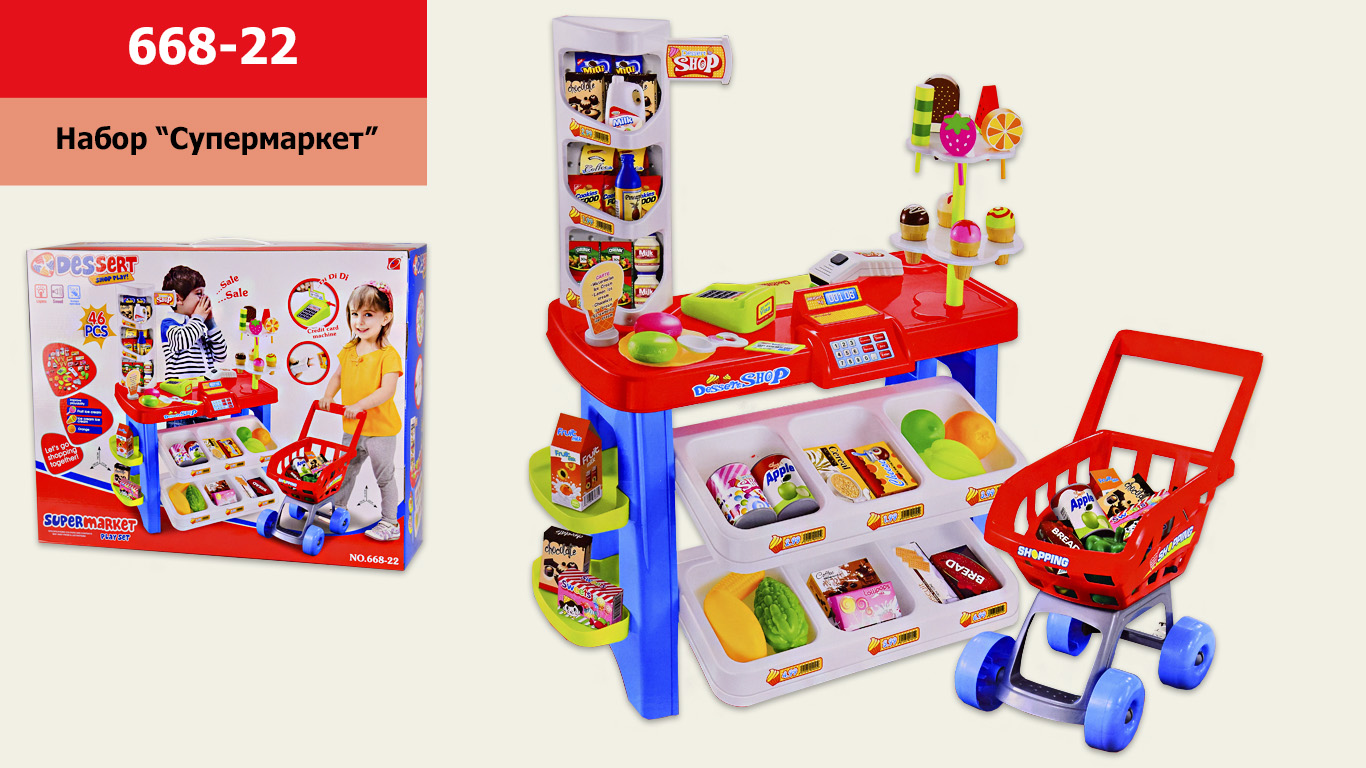 Супермаркет набір арт. 668-172 (18шт/2) батар, 46 предметів, світло, звук , каса, аксес 47*66*20, 5 см