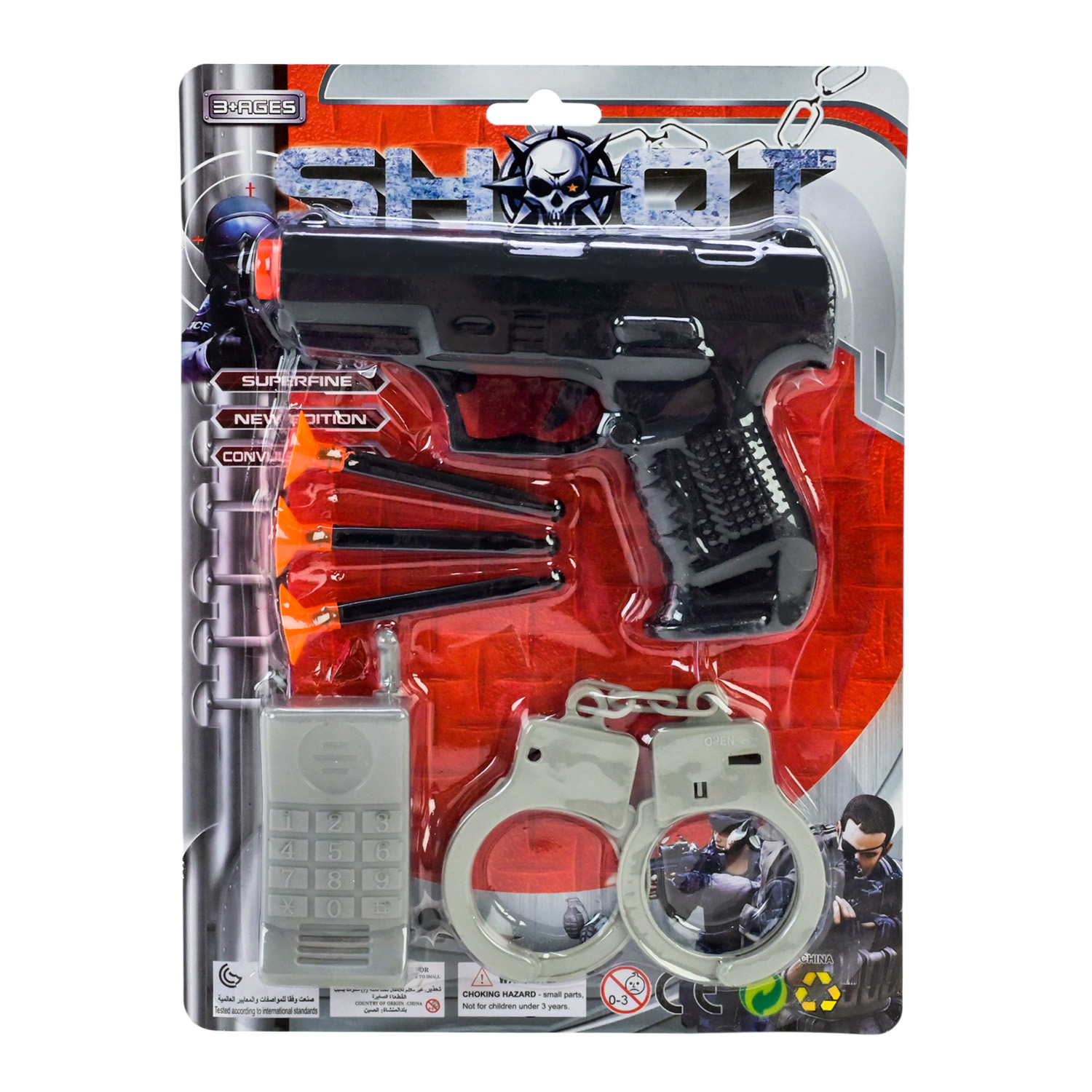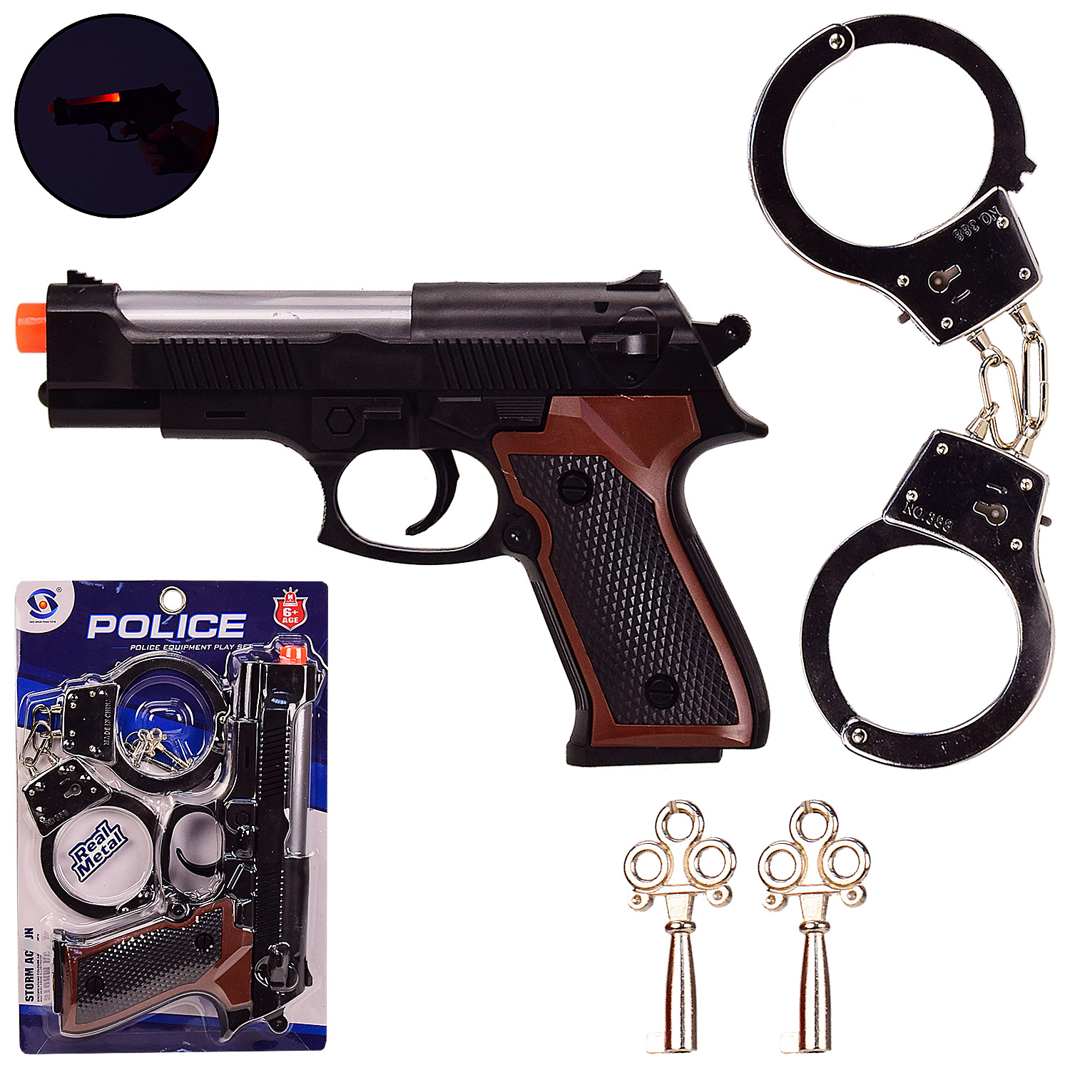 Поліцейський нібір арт. 34P30A (576шт)пістолет, наручники, знаряди на присосках, пакет 15*15см