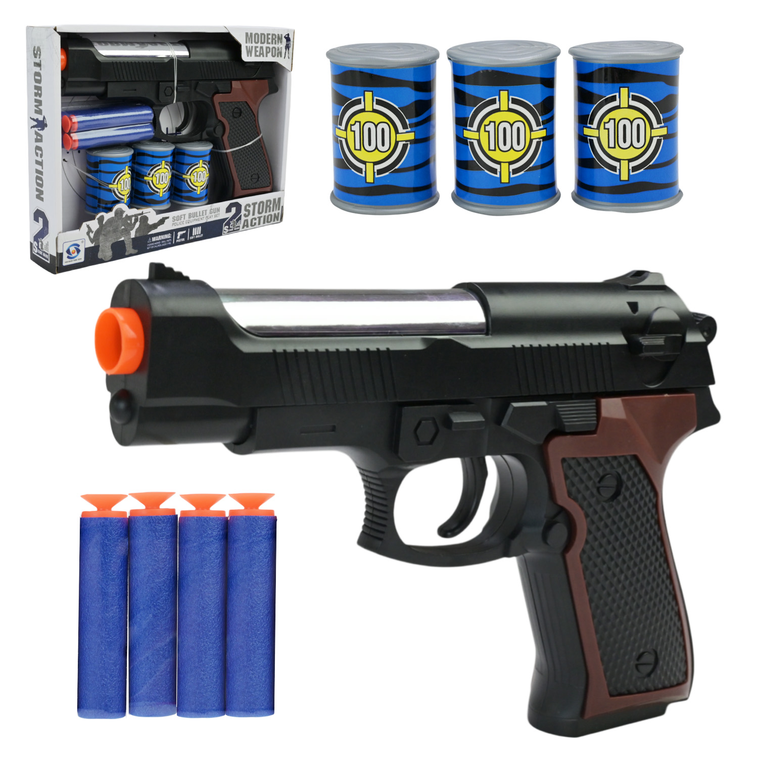 Поліцейський набір арт. HSY-181 (96шт/2) пітсолет, 3 банки-мішені, 4 поролонові снаряди, короб. 22, 5*17, 5*4, 5см