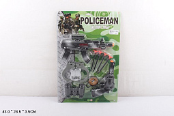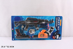 Поліцейський набір арт. 331-3 (144шт/2) автомат, 3 снаряди на присосці, наручники, окуляри, рація, планш. 63, 5*21*3, 5 см