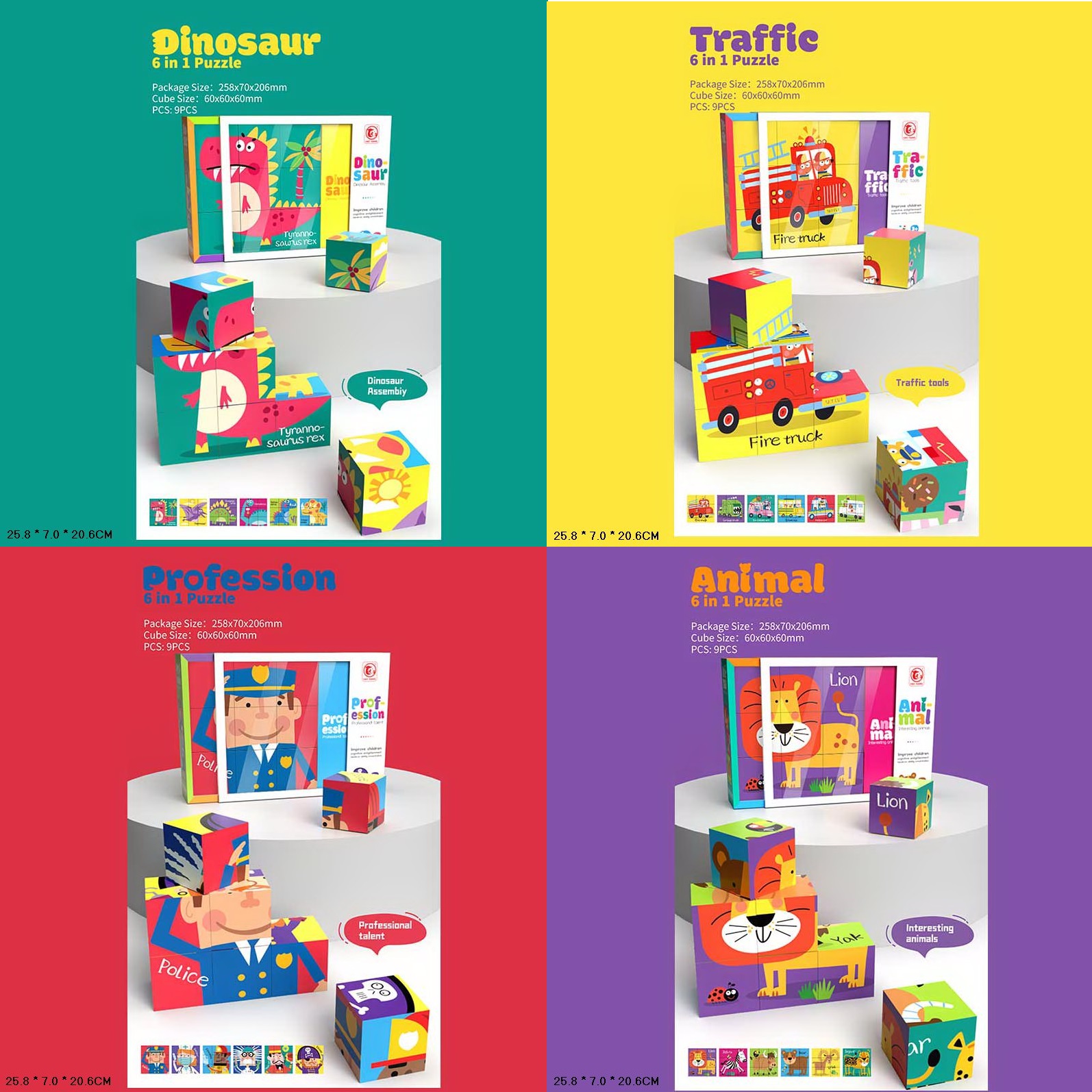 Пазли картон арт. 88623/25/26/28 (132шт/3) 4 види мікс, короб. 20*5, 8*16см