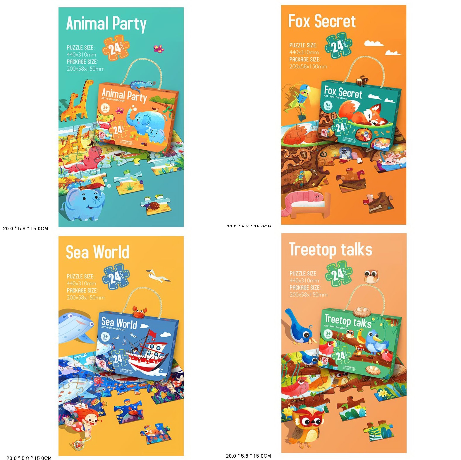 Пазли картон арт. 88619/20/21/22 (84шт/3) 4 види мікс, короб. 23*6, 5*18см