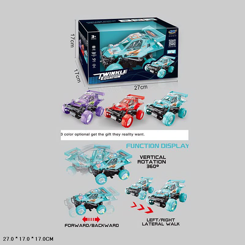 Перевертиш муз. р/к арт. CV8818-102A (36шт) 2кольора, світ., управління рукою+пульт, світяться колеса короб. 24, 1*11, 1*15см