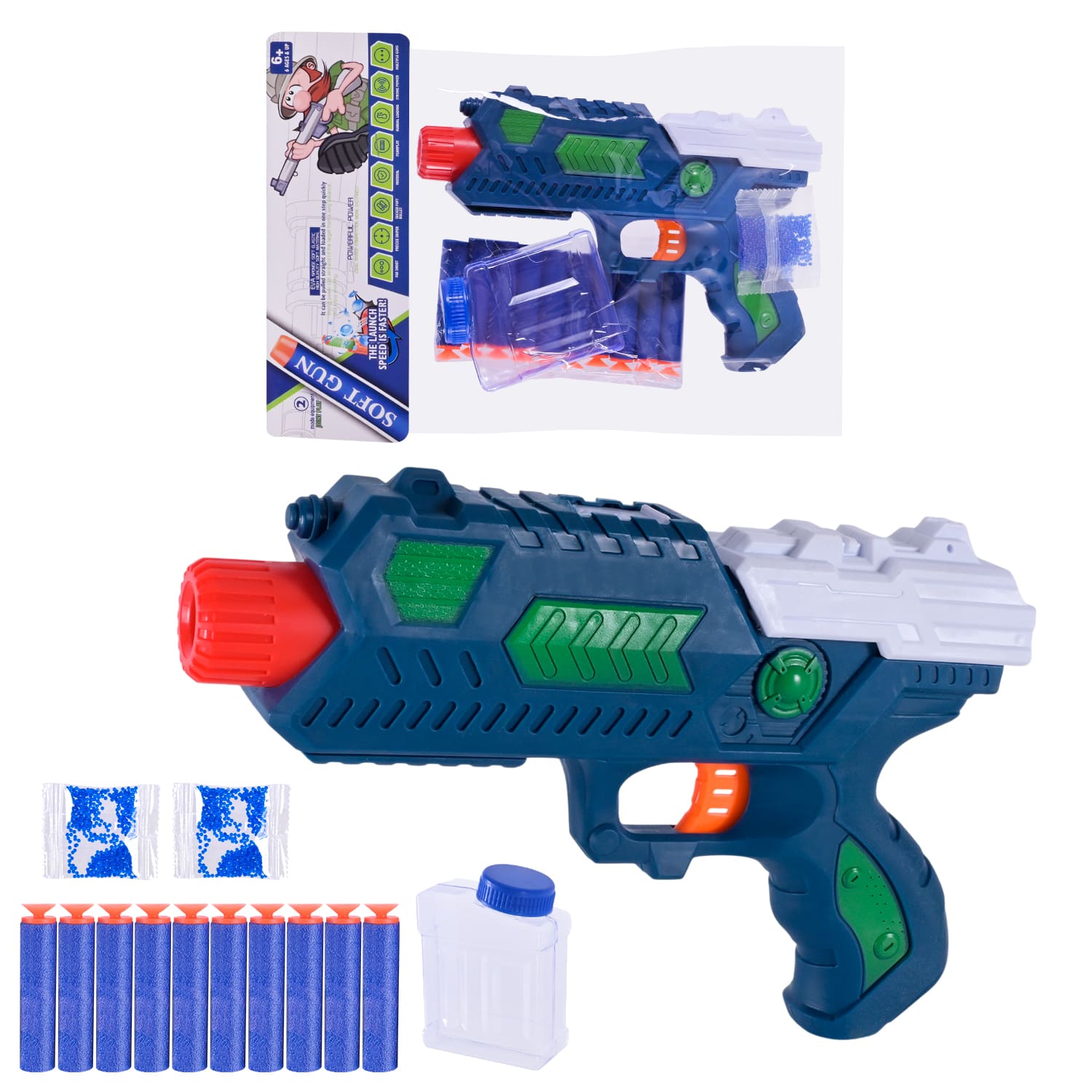 Бластер арт. 502-15 (120шт/2) 2 кольори, 2 гелієві кулі, 10 поролонових снарядів, пакет 20*5*27см