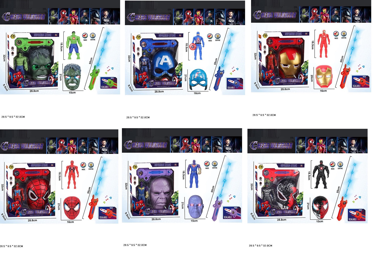 Ігровий набір арт. BJ659-A/B/C/D/E/F (30шт/2) Transformers, батар 6видів, герой, маска, меч, короб. 28, 5*9, 5*32см