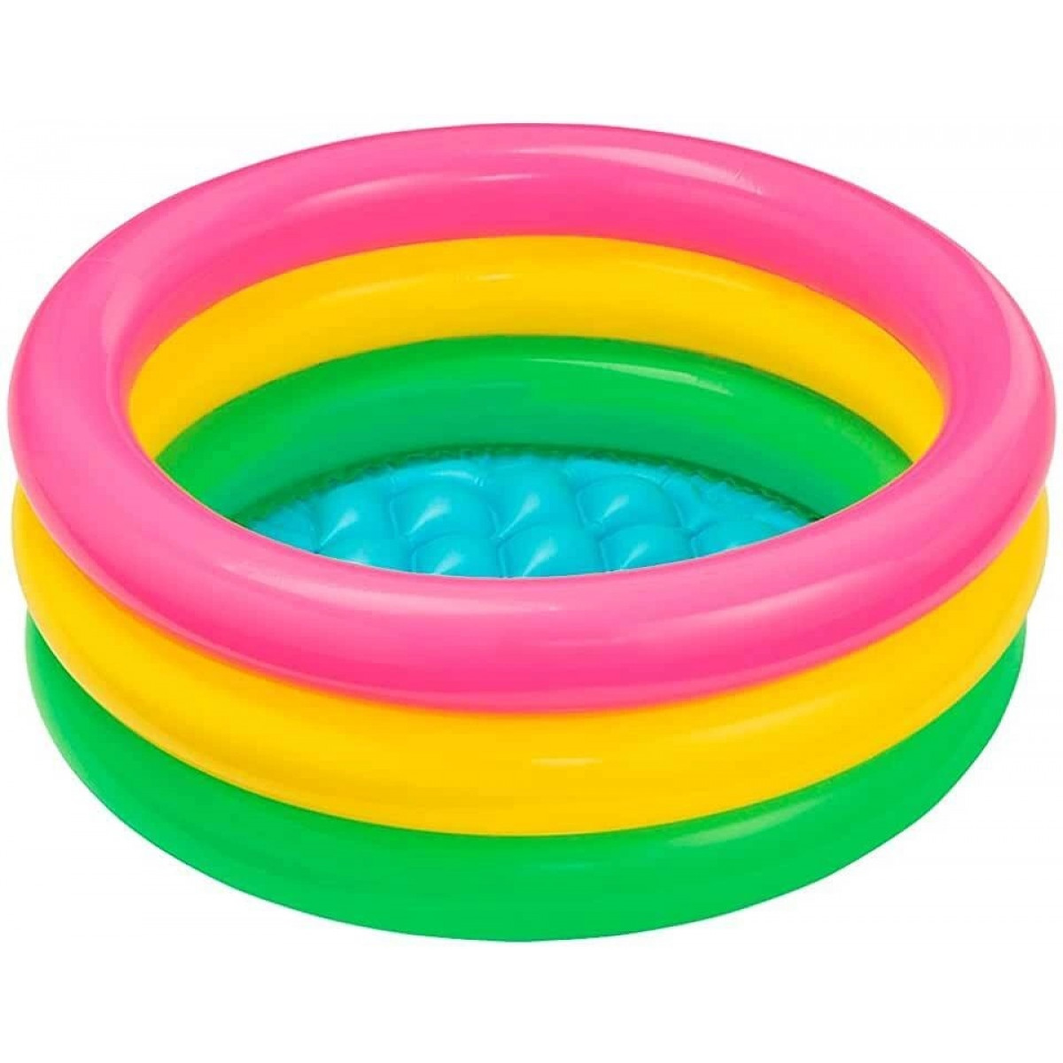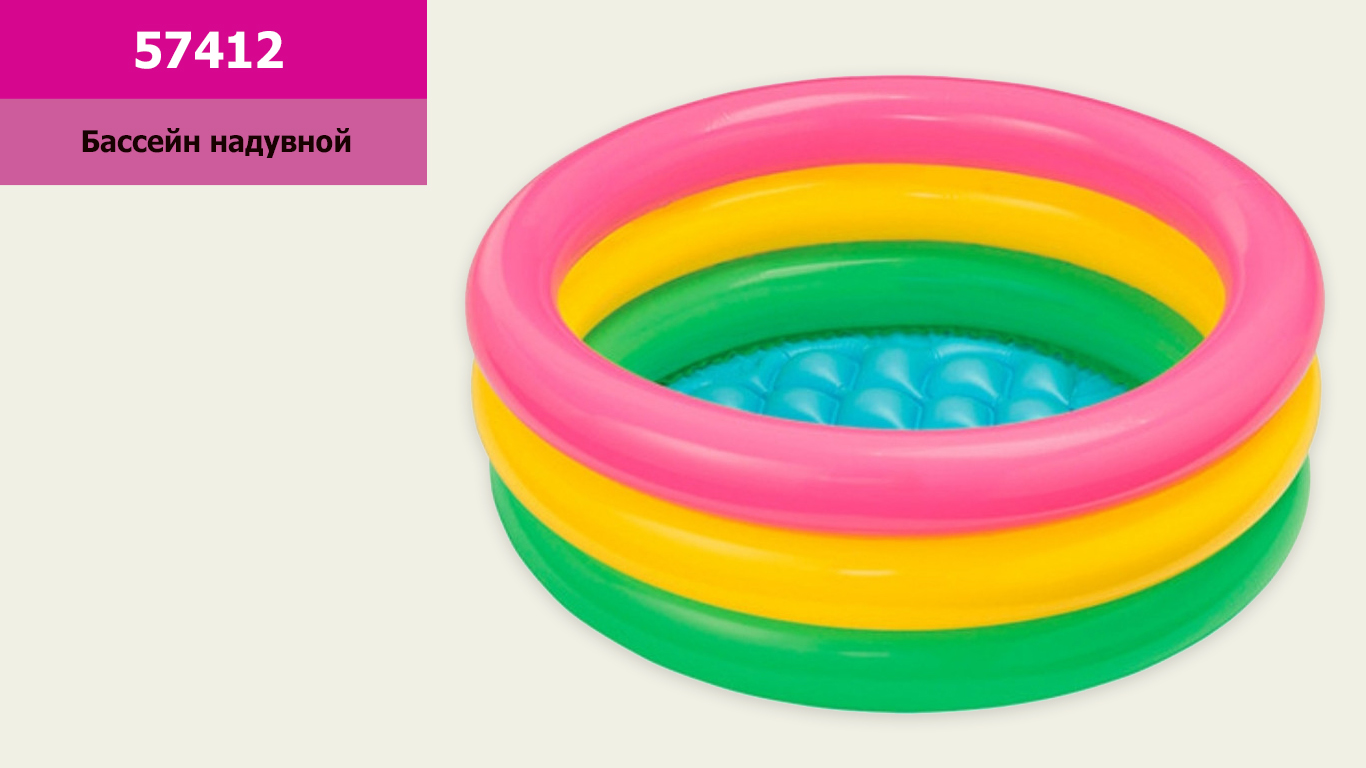Басейн надувн. 57412 (6шт) "Веселка" коло, 3 секц, реф. дно (3 років) рем комплектом, в кор 114*25см