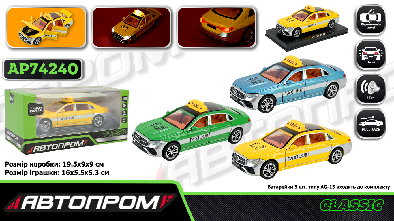 Іграшка машина мет. АВТОПРОМ арт. 68730,2кольори,батар.,світло,звук,відкр.двері,капот,багаж., у кор.20*9*9см