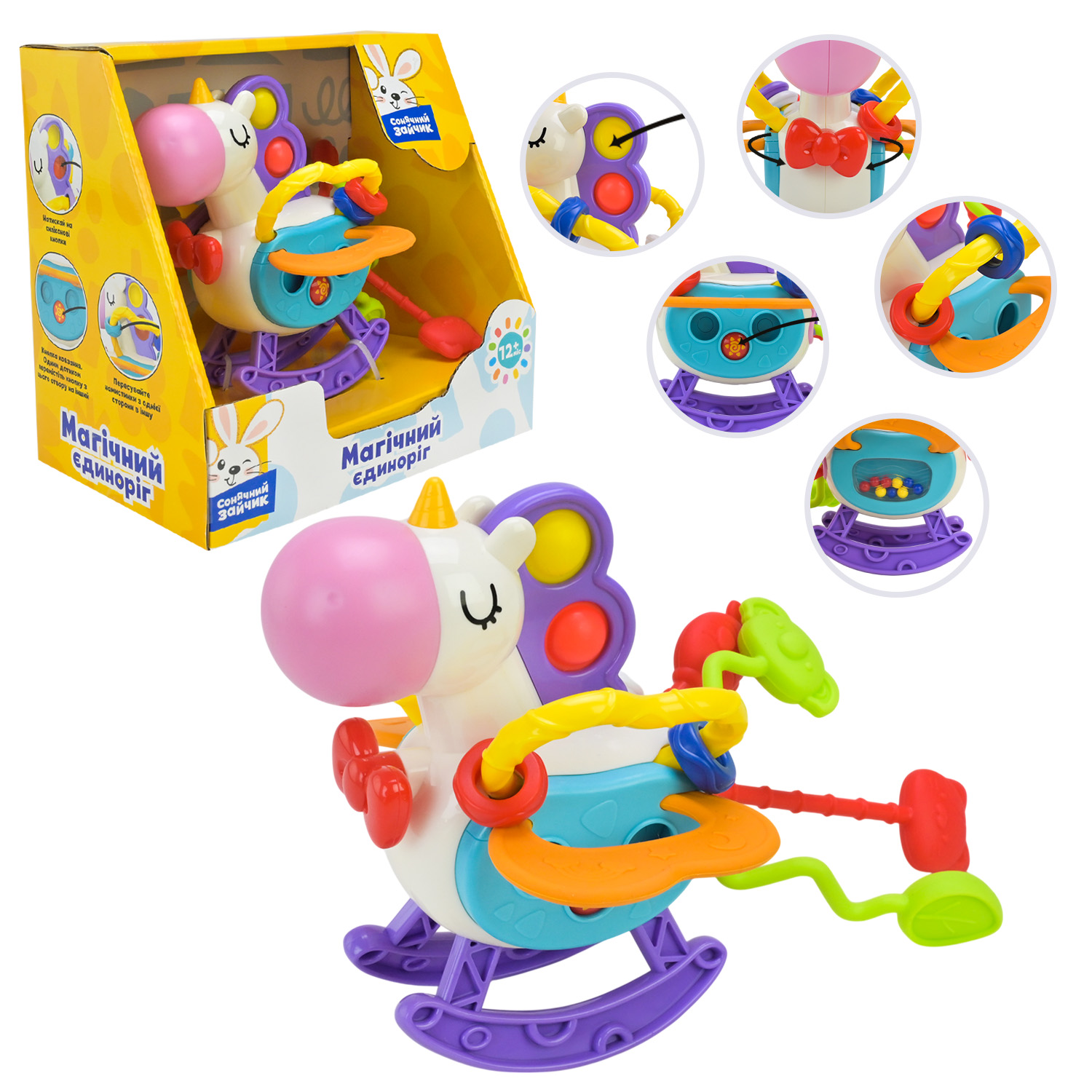 Іграшка брязкальце-прорізувач арт. PL-724-83 "Сонячний зайчик" натискать, гойдать, витягать та гризти,р-р13*17,5*15,у короб.19*18*12,5см