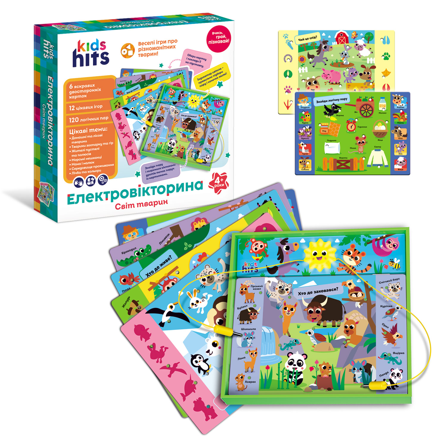 Електровікторина арт. KH55/003 "Світ тварин" батар. у комплекті, 6 карток,12 завдань, відповіді на завдання на картках, у короб.32*31*4,5см